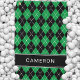 Cute custom golf towel design features a preppy black & green argyle plaid pattern with white accents. A bold black stripe has a custom template for a name or custom text. Easily tailor your design by choosing from the vast Zazzle font selection library, letting you personalize the text with a font that perfectly fits your style and vision! For custom color requests send a message using the "message" link in this listing. Please include a link or desciption to this specific design when messaging.