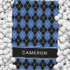 Argyle Plaid Custom Create Name Black Blue Golf Towel