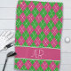 Argyle Plaid Pink Green Custom Monogram Initials Golf Towel