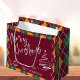 Argyle Red Green Elegant Script Merry Christmas Large Gift Bag