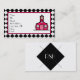 A teacher contact card featuring the logo of The Pink Schoolhouse surrounded by a black and white argyle border with pink accents. Personalize with your own information. Add your own initials to the design on the back. (line 8) Font style, size, and color may be changed using the editor.