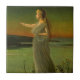 Ceramic Tile featuring John Atkinson Grimshaw’s oil painting Ariadne at Naxos (1836-1893). Ariadne, princess of Crete, stands on the island of Naxos after being left by Theseus. The stars in the night sky are her crowning glory bestowed by Dionysus. The perfect gift for fans of Greek mythology and Victorian art collectors!