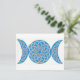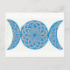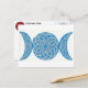 A blue and silver celtic knotwork triple moon. The knotwork on each moon is one continuous path, symbolizing the eternal nature of the spirit and the universe.