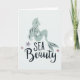 Watercolor shape of Ariel sitting amongst starfish with the words "Sea Beauty" written below.