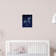 Poster featuring the symbol for Aries in soft silver blue, overlaid with the stars of the constellation, against a starry sky background graded from deep midnight blue to black.