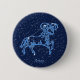 Button in the zodiac symbol for Aries in soft silver blue, overlaid with the stars of the constellation, against a starry sky background of deep midnight blue