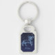 Keychain featuring the zodiac symbol for Aries in soft silver blue, overlaid with the stars of the constellation, against a starry sky background graded from deep midnight blue to black.