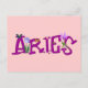 Flowers and butterflies decorate the word "Aries" on this t-shirt and other gifts that are perfect birthday presents for those born in late March and the first three weeks of April.