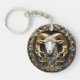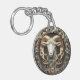 A gift for Aries: a beautiful and intricate art nouveau style personalized keychain, with a sculpted ram with gold and diamond accents. Aries symbols adorn the gems. The word "Aries" can be personalized, kept as-is, or erased.