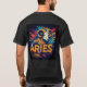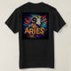 A t-shirt design featuring the Aries sign in a bold, colorful outline, surrounded by swirling astrological symbols. The design celebrates the energetic and adventurous nature of Aries, with vibrant colors and dynamic elements that capture the energy of the fire sign.