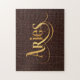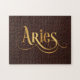 Aries Swirly Script Gold on Leather Jigsaw Puzzle