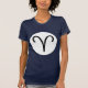 Aries symbol in black. NB This design can be customized the motif appears as a simple black symbol on light shirts, or as a black symbol in a white circle on dark shirts.