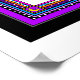 Cute, Colorful, and oh so Whimsical. "Aries the Ram" 12" x 18" Poster done in a super adorable cartoon style. We find our fun, friendly blue cartoon Ram character who has just the cutest colorfully stripped horns just hanging out in the snow under a starry night sky. Above the very elaborately decorated layers of frames, to include polka dots, triangles and stripes in colors of solid purple, black stripes with white polka dots, a thin light purple stripe, a slightly thicker blue stripe, a purple stripe with white polka dots, a solid orange stripe, alternating blue and yellow triangles and ending with a pink stripe, is the constellation Aries. In the corners are alternately suns and moons. At the top are another sun and moon on either side of the Title of the art work - "ARIES"