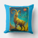 Pillow in a majestic ram standing atop rocky terrain, symbolizes the sun sign Aries. Set against a cosmic backdrop with a glowing red planet Mars, the ram's bold horns and intense gaze evoke strength, courage, and a fiery spirit.