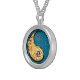 I chose gold plated so that the metal would not react with my skin oils and perspiration. But, I changed the necklace from the gold plated one to a sterling silver. My skin cells will tarnish the silver. But it will not look as bad if some portion of the gold plated necklace somehow became compromised. Zazzle did a find job turning the picture into a pendant for me. As you can see, the colors and the printing of the final product, match the preview. The picture I took is not very clear. But I am pleased with the product I received.