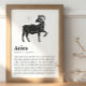 Aries Zodiac Sign black and white poster.