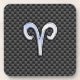 A silver chrome like Aries zodiac symbol on a carbon fiber design texture print background. A modern urban racy design for a great custom birthday gift idea.