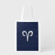 Aries Zodiac Symbol Navy Blue Carbon Fiber Style Reusable Grocery Bag