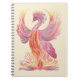 Original watercolor painting by Sandra Gale, featuring a stylized and fiery Phoenix bird with wings spread and flames rising from below. A pastel and pale array of colors make this a more muted design that works well with most background colors. Uniquely beautiful and graceful design for all.