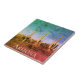 Arizona ceramic tile, with a unique cactus image of three saguaro cacti enjoying the sun near Tucson. With white customizable lettering, you can add your own information. A fun gift from your southwest vacation!