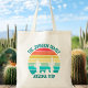This cool Arizona desert tote bag is customized with your family name for a trip to Phoenix Arizona or another desert oasis town with a cactus over the sunset. Personalized souvenir gift in bright, fun colors of teal and orange with grunge custom script.