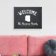Modern farmhouse wall art welcome sign personalized with your family name and city or other custom text on a faux chalkboard background. Click Customize It to move the heart to any location on the state map and further personalize the text. Custom name signs make a perfect housewarming or wedding gift for couples and families!