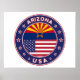 Poster of Arizona with flag of Arizona and flag of USA colors, rounded shape.