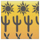 A sunset pattern in bands with a black silhouette pattern of suns, kokopellis, quail, jack rabbits, saguaro cactus, and geckos. Now how much Arizona do you want? I love this joyful southwest pattern.