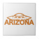 An image of an UFO and the name Arizona. Design with distressed effect.