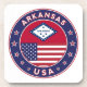 Badge of Arkansas with flag of Arkansas and flag of USA colors, rounded shape.