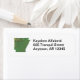 Address details on this label sit to the right of an attractive map of Arkansas. Edit the text area to enter your own details before purchasing.