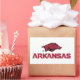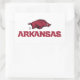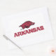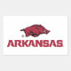 This Arkansas Razorbacks logo combines the fierce, running razorback hog icon above bold and angular "ARKANSAS" text in crimson red. The Razorback is depicted with sharp tusks, aggressive posture, and powerful motion, symbolizing strength and determination. The wordmark complements the fierce mascot with its sharp-edged, modern typeface, representing the University of Arkansas' sports teams and their relentless spirit.