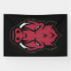 The Arkansas Razorbacks mascot logo is a fierce representation of the school's iconic hog mascot, staring directly forward with an intense, determined expression. The wild boar's face is depicted in bold crimson and black outlines, with sharp angles emphasizing strength and aggression. The eyes are narrowed, adding to the intimidating look, while the strong, symmetrical lines across the face reinforce its toughness. This logo embodies the competitive spirit and power of the University of Arkansas athletics.