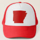Arkansas Red Snap Back Mesh Trucker Hat. Featuring the state of Arkansas in red, centered on the front of the hat. Choose from different colors and grab yours today