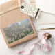 Rectangular photo sticker with the Arlington Row, honey-coloured weavers cottages in the morning fog in the town of Bibury, the Cotswolds in England, UK.