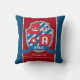 Arlo name meaning shield in red, blue, white and gray pillow. Galiant royal crown knights style crest shield monogram letter A art name pillow perfect for baby to kids and teens. Personalize with your own name beginning with A and name meaning or a message for a personalized touch. Reads Arlo Fortified hill. Invincible, majestic and brave. © Unique royal style crest coat of arms drawing, featuring a bird of prey style head, crown, star and initial monogram A letter, graphic art and design by Sarah Trett www.sarahtrett.com for www.mylittleeden.com