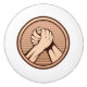 Bronze round medal with two hands in arm wrestling.