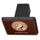 Bronze round medal with two hands in arm wrestling. Custom background color. Custom text.