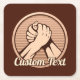 Bronze round medal with two hands in arm wrestling. Custom background color. Custom text.