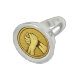 Gold round medal with two hands in arm wrestling.