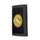 Gold round medal with two hands in arm wrestling. Custom background color. Custom text.