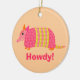 Cute and colorful armadillo on the customizable ornament. Says "Howdy!" but you can change it to your message or delete the text for an image only.