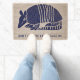 Welcome guests (except those armadillos!) to your home in style with this welcome mat or door mat that's ready to be personalized with your own custom message - or leave the funny text as is if you've been dealing with an armadillo infestation. Features a simple and bold illustration of an armadillo against a natural colored background.