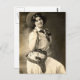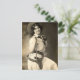 Vintage photo of a young woman in western garb. She's wearing a gun holster and a gun