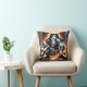 Armored Cat Preparing for Battle in Fiery Setting Throw Pillow