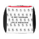 Pouf square black and white with monkey figure and his mini-me and "ARMS AKIMBO ENVIRONMENTAL CRIME FIGHTER" with Y-NOT-ME logo. This is a picture of the aftermath of Hurricane Katrina and "GLOBAL-WARMING CAUSED THIS MESS New Orleans, Louisiana-2005". On the other side is the word life in both English and Chinese with "IN ANY LANGUAGE LIFE IS PRESCIOUS". This pouf is for children who are a bit older. It gives us a chance to talk about global warming with them. They see what`s happening.