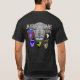 My 11 yo wore adult XL (5’7” 165#). The 8yo is small framed. She wore adult small and tied it in the back. Grandma wore adult large with long sleeve shirt underneath. Tall girl adult medium. Dark haired male adult large. Good quality dark Heather gray, Gildan brand shirt. -it was next up from basic choice and cost about $20 per shirt. Not too thick or thin. Washed and dried well, no major shrinkage. Not see-through. Can wear a bra under it fine. Screen print is just as shown and well done, front and back.
