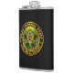 Well made flask, a little better than I had expected. Flask came in clear plastic box which gave it a nice presentation when I took it out of the zazzle packaging. Image is not printed on flask but on sticker. Don't know how this will hold up I haven't used it yet. This would make a Great gift! I plan to purchase more for friends! Cheers. I thought a little brighter than computer. Very crisp, writing wasn't