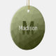 Army green light ombre geometric mesh pattern Monogram Ceramic Christmas tree Ornament. Monogram Personalize with your custom initial and name. Triangle geometric mesh with light dark Army green ombre gradient modern design.