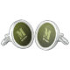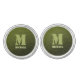 Army green olive geometric mesh pattern Monogram Cufflinks